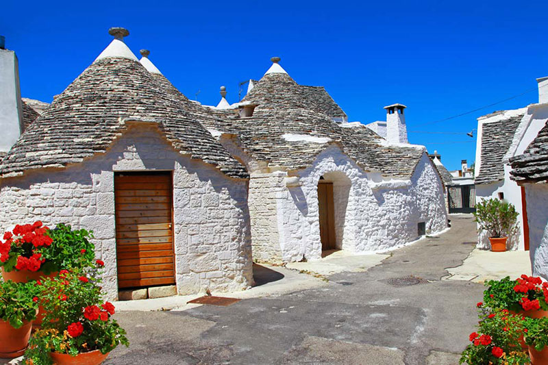 Alberobello (Unesco) sodi med nenavadne in edinstvene kraje celotne Italije. Slovi po svoji posebnosti: stžičastimi kamnitimi hiškami, grajenimi brez trajnega veziva. Sprehod po ulicah Alberobello nas popelje v pravljični svet preteklih časov.
